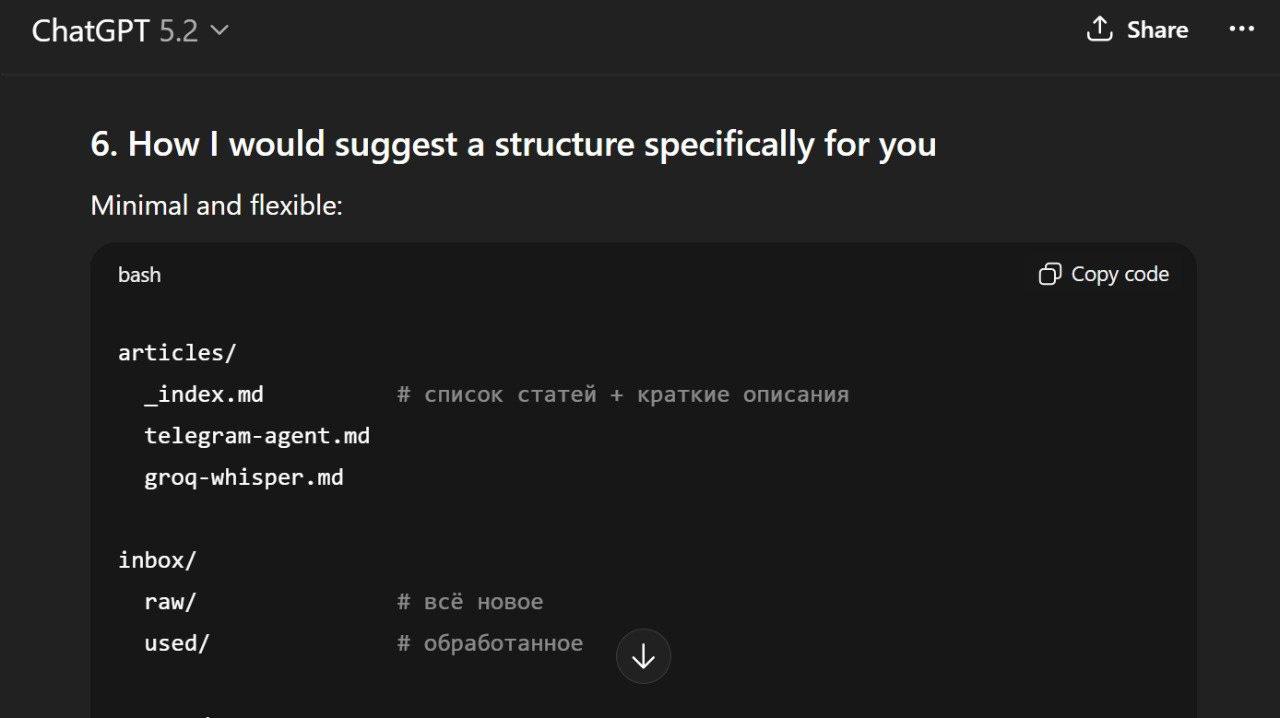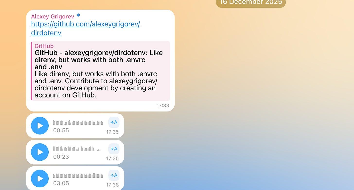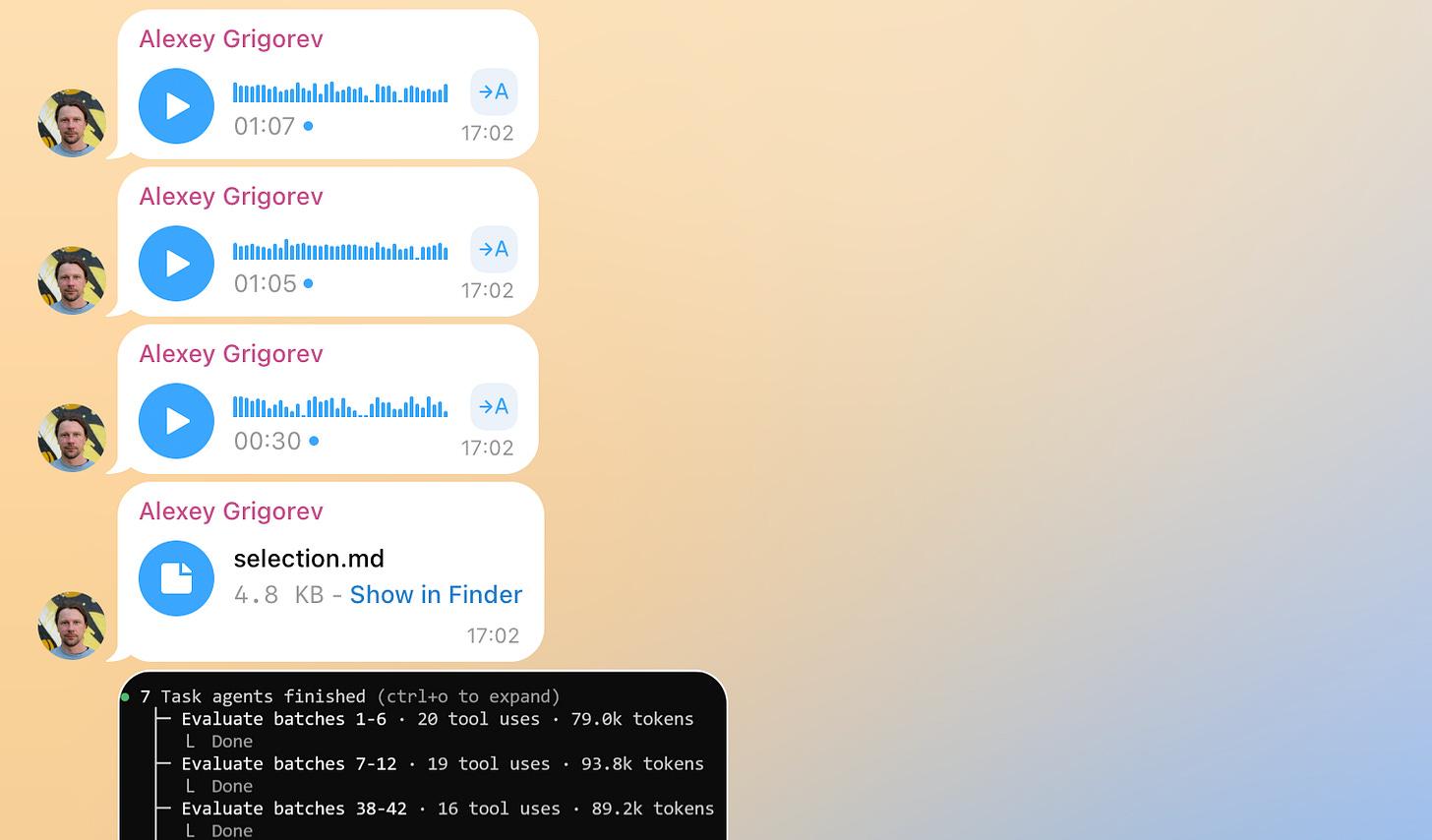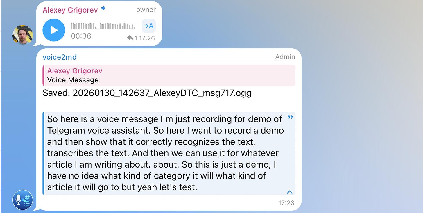 But it had one limitation: manual processing. Over time, my Telegram became overloaded with voice notes that quickly piled up into a long, unstructured list of raw materials. Some pieces belonged to the same topic. Others were partial thoughts, corrections, or follow-ups.